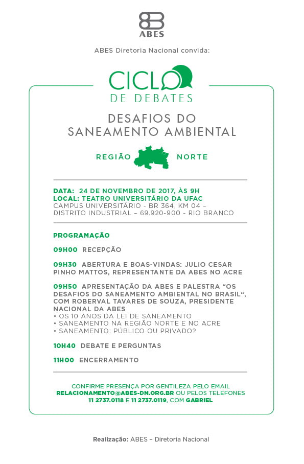 Copyright © 2016 | Todos os direitos reservados. ABES - Associação Brasileira de Engenharia Sanitária e Ambiental | Avenida Beira-Mar, 216, 13º andar, Rio de Janeiro – Tel.: (21) 2277-3900