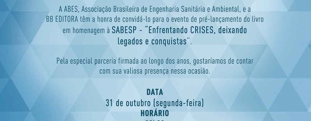 Copyright © 2016 | Todos os direitos reservados. ABES - Associação Brasileira de Engenharia Sanitária e Ambiental | Avenida Beira-Mar, 216, 13º andar, Rio de Janeiro – Tel.: (21) 2277-3900