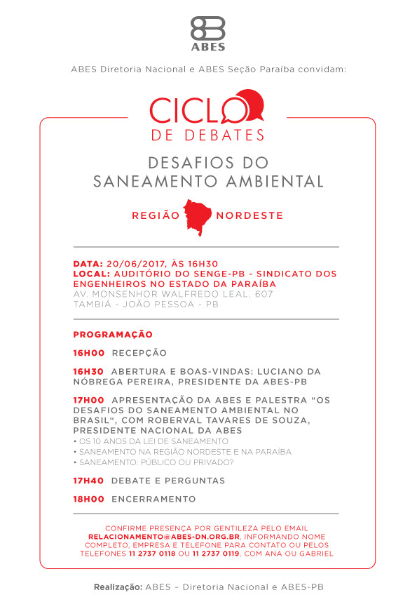 Copyright © 2016 | Todos os direitos reservados. ABES - Associação Brasileira de Engenharia Sanitária e Ambiental | Avenida Beira-Mar, 216, 13º andar, Rio de Janeiro – Tel.: (21) 2277-3900