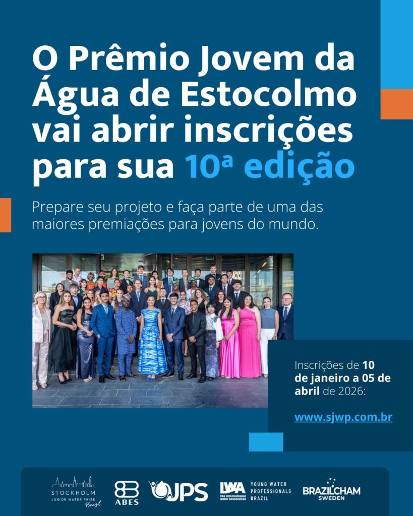 As inscrições para a 10ª edição do Prêmio Jovem da Água de Estocolmo (Stockholm Junior Water Prize – SJWP) no Brasil serão abertas no próximo dia 10 de janeiro de 2026 e seguem até 5 de abril de 2026, às 23h59 (horário de Brasília).