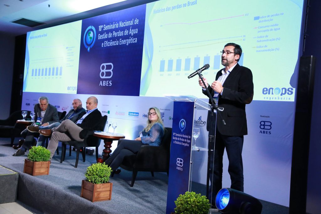 Roberval enfatiza a relevância do seminário para o setor. “Quero parabenizar a ABES pelo evento, um seminário importante, o maior de gestão de perdas do Brasil, envolvendo concessionárias públicas e privadas, estaduais e municipais, com a presença de técnicos de excelente qualidade e muitos painéis discutindo a questão relacionada à gestão de perdas, em especial as tratativas relacionadas a como fazer diferente para que possamos vencer os desafios relacionados às metas de cumprimento do Plano de Redução de Perdas a nível nacional”, ressalta. “Hoje as perdas no Brasil são muito altas, chegam a 40%. Há concessionárias que já estão no caminho certo, com perdas menores do que 25%, e nós precisamos aprender com elas e ajudar o Brasil a melhorar os indicadores. O Marco Legal pede isso, mais eficiência, e é dessa forma que nós devemos, enquanto sanitaristas, correr atrás do ganho de eficiência. Foi um seminário muito importante, muitos técnicos de excelência participando, de renome nacional, que podem ajudar o Brasil a melhorar os indicadores de perdas”, conclui o diretor da Sabesp.