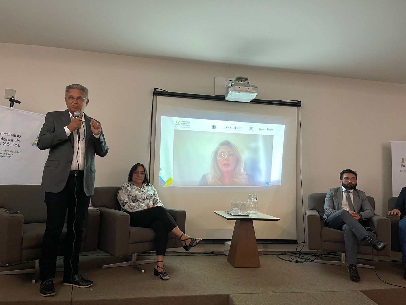 O presidente nacional da ABES, Alceu Guérios Bittencourt, participando virtualmente, fez os cumprimentos à Seção RN da ABES pelo apoio na realização do seminário, à Câmara Temática de Resíduos e às Câmaras Técnicas Estaduais, e concordou que esta é uma das áreas mais ativas da ABES, o que faz com que a Associação contribua fortemente nas discussões sobre resíduos e suas práticas. “Estamos vivendo um momento importante no País, com os novos governos estaduais, o Congresso Nacional e Governo Federal, que vão assumir a gestão 2023-2026. Então, este seminário, além das questões técnicas, nas discussões institucionais, tem a oportunidade de auxiliar em relação às políticas públicas do setor”, ressaltou.