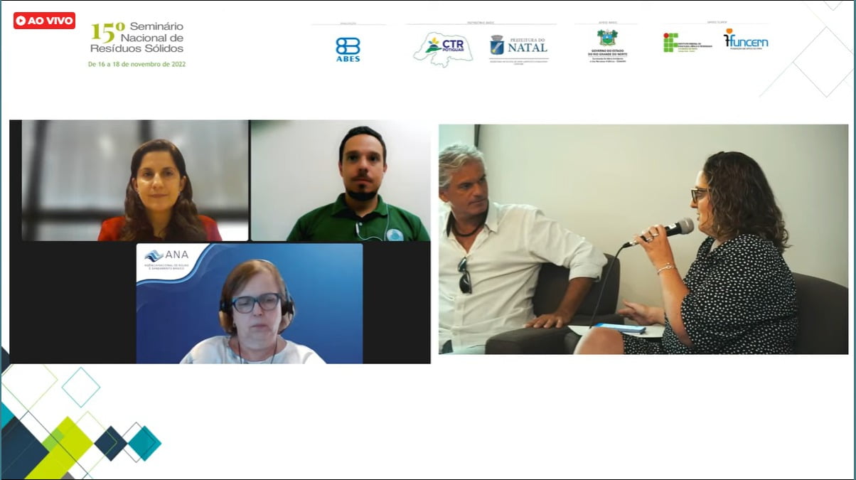 Como palestrantes, estiveram presentes Sergio Luís da Silva Cotrim, coordenador de Resíduos Sólidos da Agência Nacional de Águas e Saneamento Básico (ANA), Rodrigo Oliveira, CEO da Green Mining, Zilda Veloso, analista da ANA, e Fabiana Figueiró, advogada na Souto Correia e Advogados.