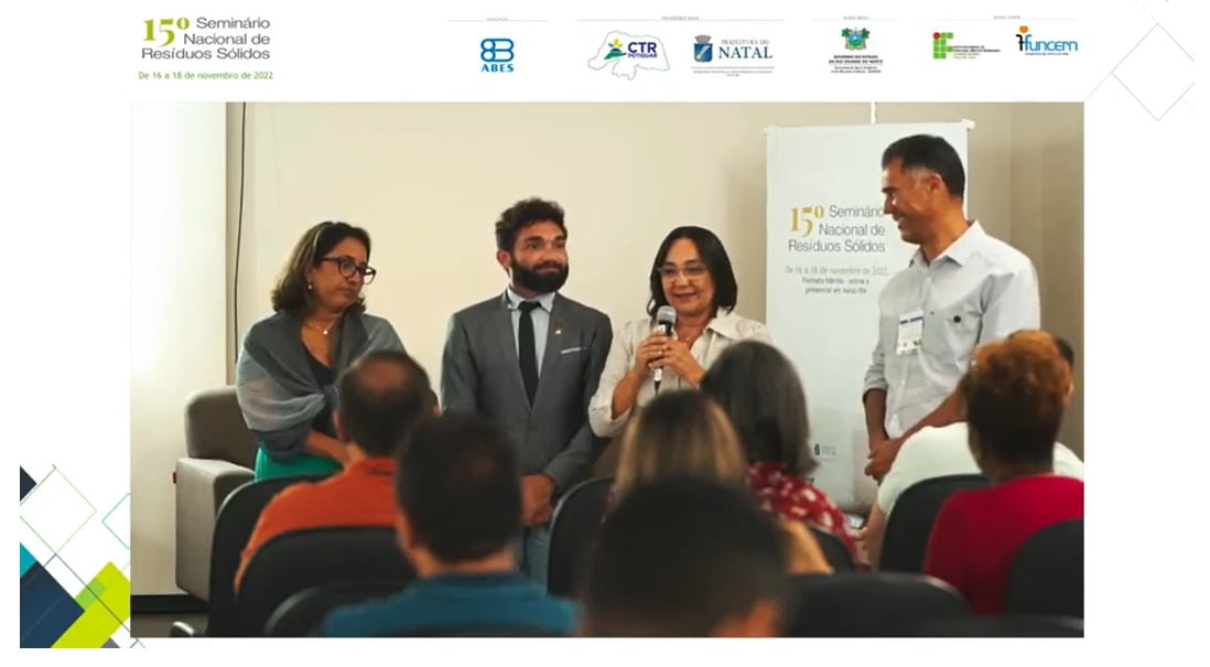 O terceiro painel do 15º Seminário Nacional de Resíduos Sólidos (SNRS) reuniu nesta quinta-feira, 17 de novembro, especialistas em torno do tema ‘Logística Reversa”. Promovido pela Associação Brasileira de Engenharia Sanitária e Ambiental – ABES, por meio da Seção Rio Grande do Norte (ABES-RN) e da Câmara Temática de Resíduos Sólidos, o evento aconteceu em formato híbrido: online, em plataforma exclusiva, e presencial, no Museu de Minérios do RN, entre os dias 16 e 18.
