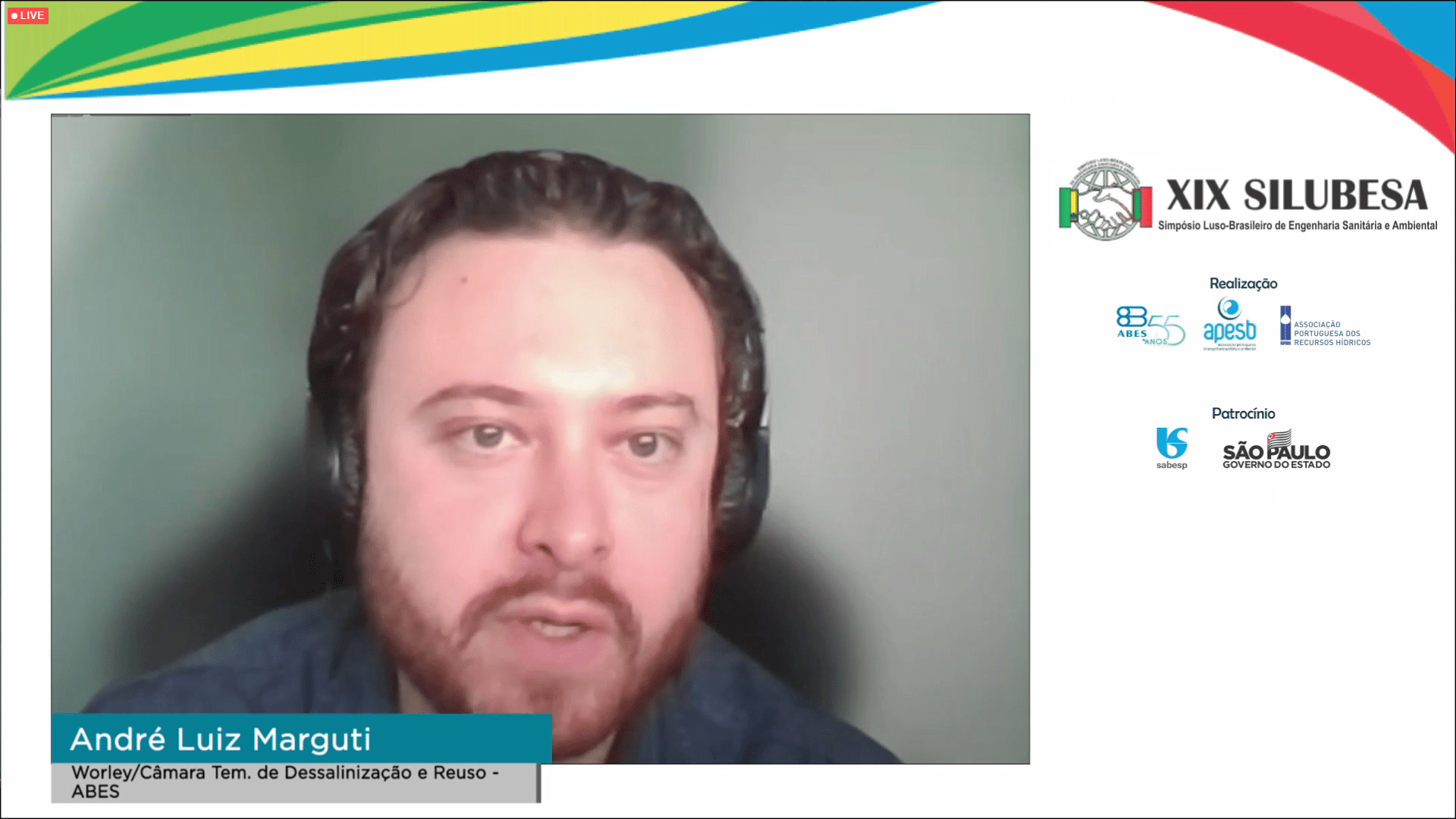 O moderador do penúltimo painel do simpósio foi André Luiz Marguti, engenheiro da Worley e membro da Câmara Temática de Dessalinização e Reúso da ABES.