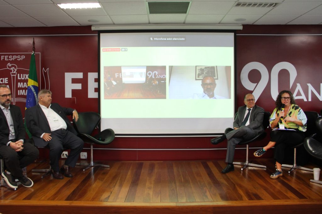 Marcelo Abrantes Linguitte, remoto, gerente-geral da Mútua – Caixa de Assistência dos Profissionais dos Conselhos Regionais de Engenharia e Agronomia (CREA), tratou de expor sobre como a iniciativa privada voluntariamente se envolve para o desenvolvimento das cidades sustentáveis. Para tanto, fez um breve panorama dos desafios para tal construção, como a implantação do conceito ESG (do inglês para Ambiental, Social e Governança) e o Investimento Social Privado.