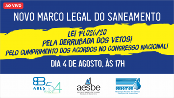 Novo marco do saneamento: entidades promovem mobilização online pela derrubada dos vetos. Inscreva-se para assistir 03/08/2020