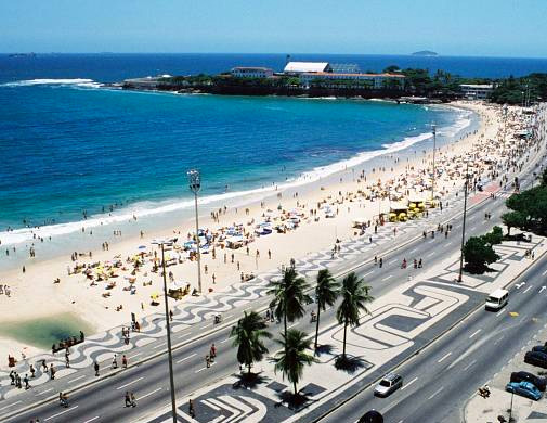 É a praia mais famosa do mundo com seu calçadão simulando os movimentos das ondas. Seu calçadão possui vários quiosques e há sempre gente praticando esportes. Durante o ano inteiro acontecem eventos de expressão como competições mundiais de futebol, vôlei e shows de grandes celebridades mundiais e um dos maiores réveillons do mundo. Ali encontra-se também o forte construído em 1914, que conserva as características originais, com suas muralhas de 12 metros de espessura voltadas para o mar.