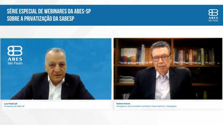 A Associação Brasileira de Engenharia Sanitária e Ambiental Seção São Paulo (ABES-SP) realizou, nesta quarta-feira (31), o quarto webinar da série especial sobre a privatização da Sabesp. Transmitido ao vivo pelo canal da ABES do YouTube, o evento foi coordenado pelo presidente da ABES-SP, Luiz Pladevall, e contou com a palestra do advogado Rubens Naves, sócio fundador da Rubens Naves Santos Jr. Advogados.
