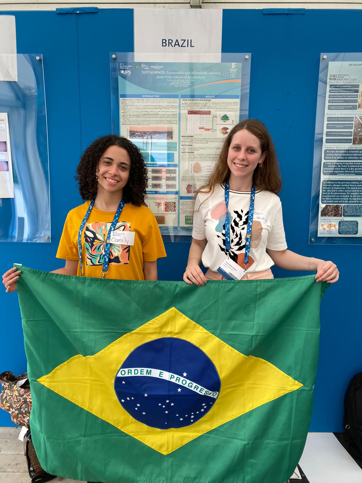 Após a conquista da etapa nacional da premiação, promovida no Brasil pela ABES, por meio do JPS, Camily Pereira dos Santos e Laura Nedel Drebes foram laureadas na Suécia com Prêmio de Excelência pelo projeto “SustainPads: Absorventes Sustentáveis e acessíveis a partir de subprodutos industriais”.