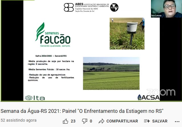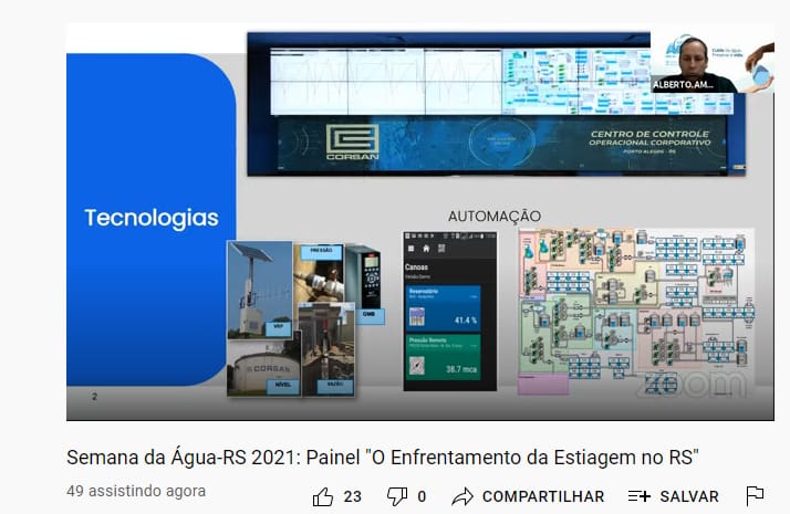 Diego Carrillo falou sobre o conceito e as questões que envolvem o enfrentamento da estiagem, falta de recuperação dos volumes de água no solo e subsolo, bacias hidrográficas, diminuição da disponibilidade hídrica e as questões climáticas, e ações para combater a estiagem. Ivo lessa apontou as dificuldades, os desafios e as soluções para a agronomia e a agricultura para enfrentar a estiagem. E Alberto Amaral abordou a questão operacional. Entre os outros tópicos, ele discorreu sobre tecnologias, segurança energética, controle operacional de perdas, e manutenção eletromecânica.