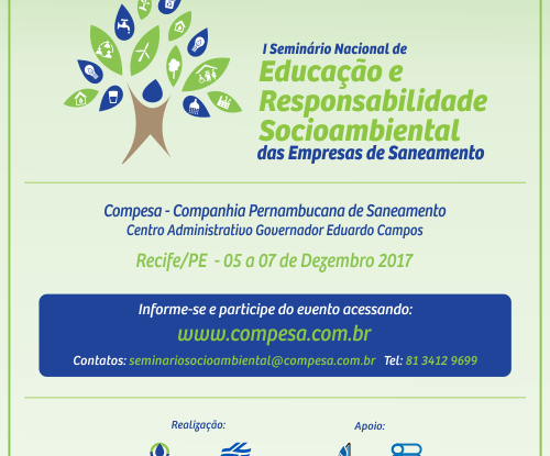 Com o apoio da ABES, a Companhia Pernambucana de Saneamento – Compesa promoverá, de 5 a 7 de dezembro, o I Seminário Nacional de Educação e Responsabilidade Socioambiental das Empresas de Saneamento (veja a programação abaixo).