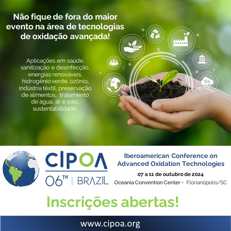 A Associação Brasileira de Engenharia Sanitária e Ambiental – ABES é uma das apoiadoras do evento Iberoamerican Conference on Advanced Oxidation Technologies – CIPOA, que acontecerá de 7 a 11 de outubro de 2024, na cidade de Florianópolis, Santa Catarina. As inscrições e submissão de resumos estão abertas até o dia 15 de março do ano que vem no site do evento: www.cipoa.org.