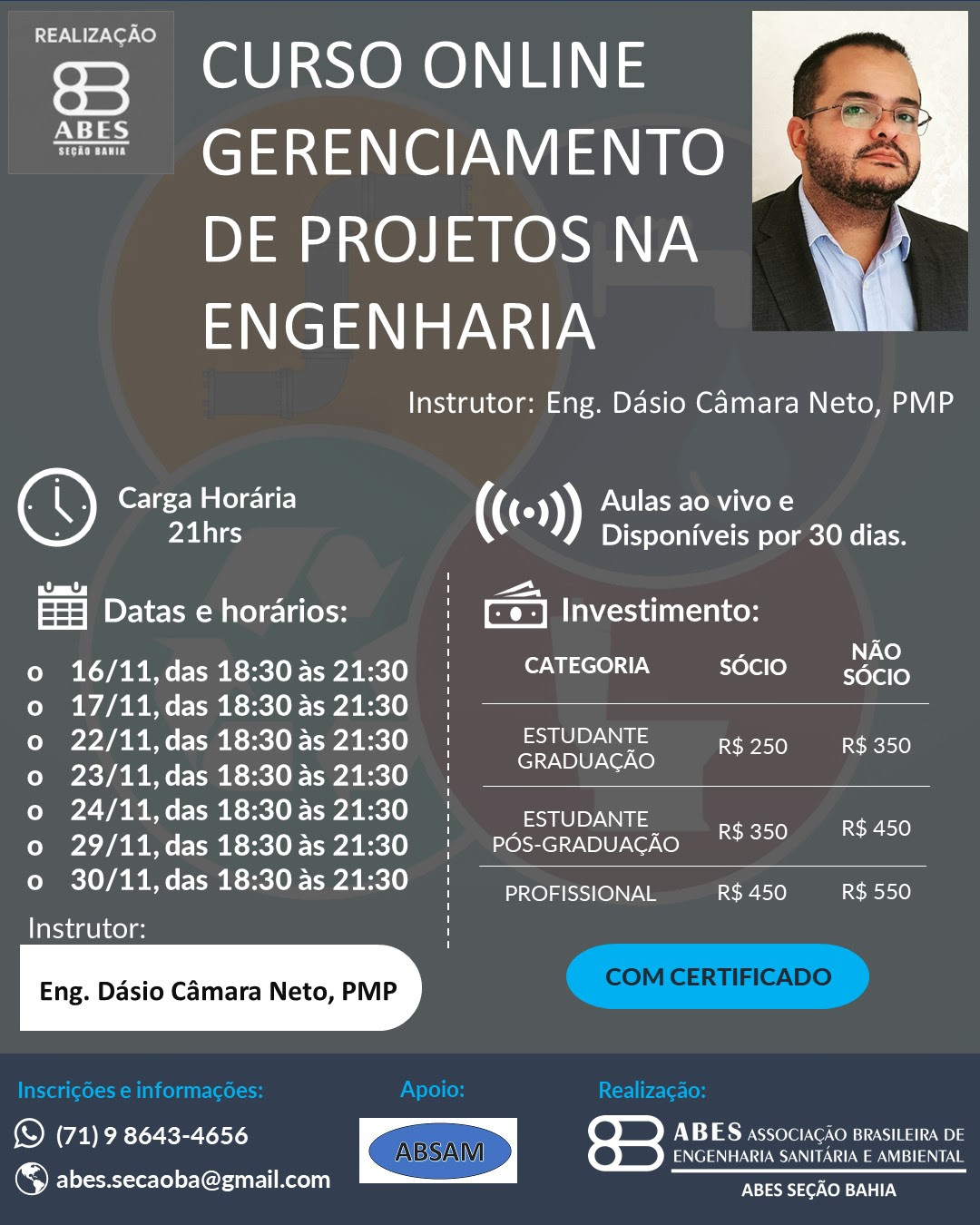 Para inscrições e mais informações: (71) 98643-4656 📲 ou abes-ba@abes-dn.org.br ou abes.secaoba@gmail.com
