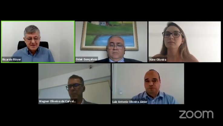 Aline Batista de Oliveira, secretária da Câmara Técnica de Regulação da Associação Brasileira das Empresas Estaduais de Saneamento – AESBE, Odair Gonçalves, contador e técnico superior na Agência Estadual de Regulação dos Serviços Públicos Delegados do Rio Grande do Sul – AGERGS, e Wagner Oliveira de Carvalho, gestor na Aegea e professor no Zigurat Institute (Instituto de Tecnologia de Barcelona), foram os palestrantes do debate.