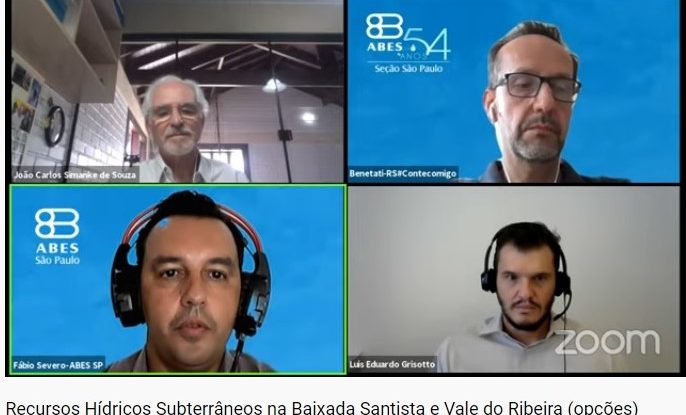 Com a apresentação de Fábio Severo, membro do Conselho da ABES-SP, e mediação de Mário Benetati Filho, diretor da Subseção Litoral da ABES-SP, o webinar contou com as palestras de Luis Eduardo Grisotto, diretor da ABES-SP e coordenador da Câmara Técnica de Recursos Hídricos da Seção, e de João Carlos Simanke de Souza, doutor em Hidrogeologia e consultor.