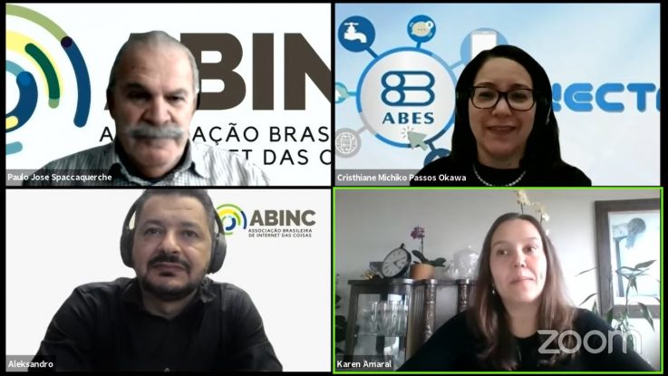 Cristhiane Michiko Passos Okawa, engenheira civil e professora da Universidade Estadual de Maringá, moderou o webinar. Os participantes foram Paulo Spacca, presidente da ABINC – Associação Brasileira de Internet das Coisas; Aleksandro Montanha, presidente do Comitê de Cidades Inteligentes da ABINC; e Karen Juliana do Amaral, diretora da ABES-PR.