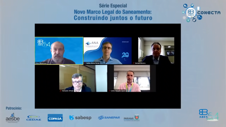 O debate online contou com a participação de Samuel Moreira, deputado federal; Carlos Motta, superintendente-adjunto da ANA; Fernando Franco, presidente da ABAR (Associação Brasileira de Agências de Regulação); Carlos Eduardo Tavares, presidente da Copasa (Companhia de Saneamento de Minas Gerais). A moderação foi feita pelo presidente nacional da ABES, Alceu Guérios Bittencourt.