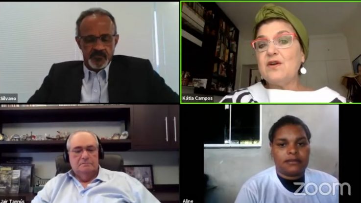 Aline Sousa Silva explicou sobre o trabalho das cooperativas e dos catadores. Conforme explicou, a Central das Cooperativas de Materiais Recicláveis do DF (Centcoop) integra 21 cooperativas de catadores e 3 redes de cooperativas. Aline ressaltou que os catadores têm sido ouvidos em importantes discussões sobre o tema. Para ela, as cooperativas devem ser incluídas para prestação de serviços e universalização dos serviços de limpeza para gerar cidadania e renda para os catadores. A palestrante salientou ainda que os catadores vêm enfrentando dificuldades durante a pandemia, mas voltaram a trabalhar por questões econômicas, ambientais e sociais.