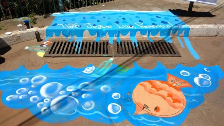 Ao todo, foram 57 bocas de lobo pintadas em 17 regiões administrativas, que drenam do Paranoá. “Pensamos fazer as intervenções em três bocas de lobo por região administrativa, [uma espécie de subprefeitura, comparando com São Paulo, por exemplo] mais três na Universidade Federal de Brasília – UNB, outras três na Universidade Católica de Brasília – UCN (como esta estava em recesso, as intervenções foram transferidas: duas para Águas Claras e uma para a Octogonal”, conta João Marcos Paes.