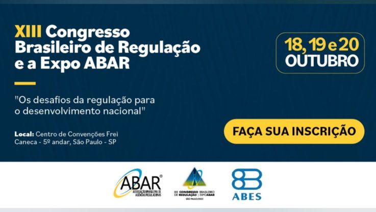Uma parceria com a ABAR oferece aos associados da ABES um desconto de 15% no valor da inscrição para o XIII Congresso Brasileiro de Regulação e Expo ABAR. Até o dia de início do encontro, associados da ABES poderão realizar a inscrição com valor reduzido em 15%, em relação ao que é cobrado de não-associados (R$ 1.140). Com o desconto, o preço cai para R$ 969. Clique aqui para fazer a inscrição e selecione a categoria “Associado ABES, Aesbe, Assemae e ABCR”.
