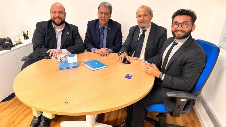 Representantes da Associação Brasileira de Engenharia Sanitária e Ambiental – ABES e a Mútua (Caixa de Assistência dos Profissionais dos Creas) estiveram reunidas, nesta quarta-feira, 29 de março, em Brasília/DF, para discutir parcerias entre as duas entidades e falar sobre o 32º Congresso Brasileiro de Engenharia Sanitária e Ambiental (CBESA) – o Congresso da ABES e Fitabes 2023. Pela Associação, participaram o presidente nacional, Alceu Guérios Bittencourt, o diretor executivo, Josivan Cardoso, e o presidente da ABES-Rio, Miguel Fernández y Fernández. A Mútua foi representada por seu presidente nacional, Francisco Almeida.