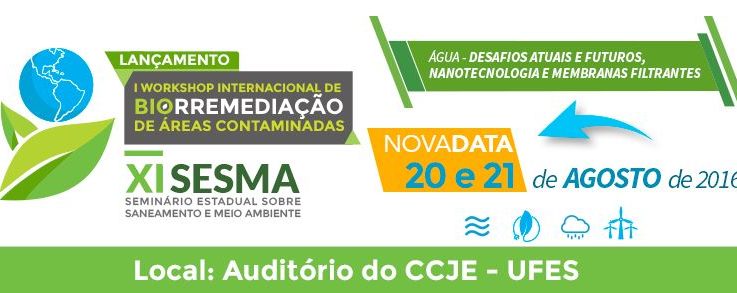 O SESMA deste ano, acontecerá associado ao I Workshop Internacional de Biorremediação de Áreas Contaminadas, idealizado pela Universidade Federal do Espírito Santo – UFES, através do seu Departamento de Engenharia Ambiental do Centro Tecnológico – DEA-CT, a qual vem trabalhando com o tema BIORREMEDIAÇÃO desde 2006, desenvolvendo vários artigos, dissertações e teses abordando, principalmente, a geração de resíduos oleosos derivados do saneamento ambiental e sua possível utilização na forma de bioenergia. Assim, estes trabalhos vêm aprimorando uma linha de pesquisa envolvendo a biorremediação de resíduos com grande impacto ambiental (problema) e a geração de biocombustíveis associados (solução) visando o incremento da sustentabilidade de Estações de Tratamento de Esgotos e de Efluentes Industriais e processamento de tecnologias ambientais “limpas”.
