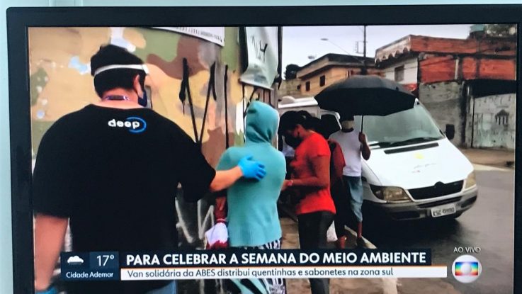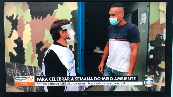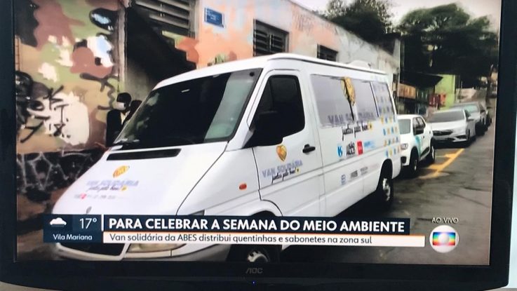Celebrando a Semana do Meio Ambiente, o Projeto Van Solidária, idealizado pela Grape/Global Eco e apoiado pela ABES, foi destaque no Jornal SP1 (da TV Globo) desta terça-feira, 2 de junho durante entrega de 300 quentinhas e kits com sabonetes a moradores da área do Córrego Zavuvus, na capital paulista. A atividade foi realizada na Associação de Moradores e Amigos do Bairro Vila Joaniza e contou ainda com participação de educadores, que levaram informações sobre higiene e descarte correto de resíduos às famílias do local. Assista ao vídeo.