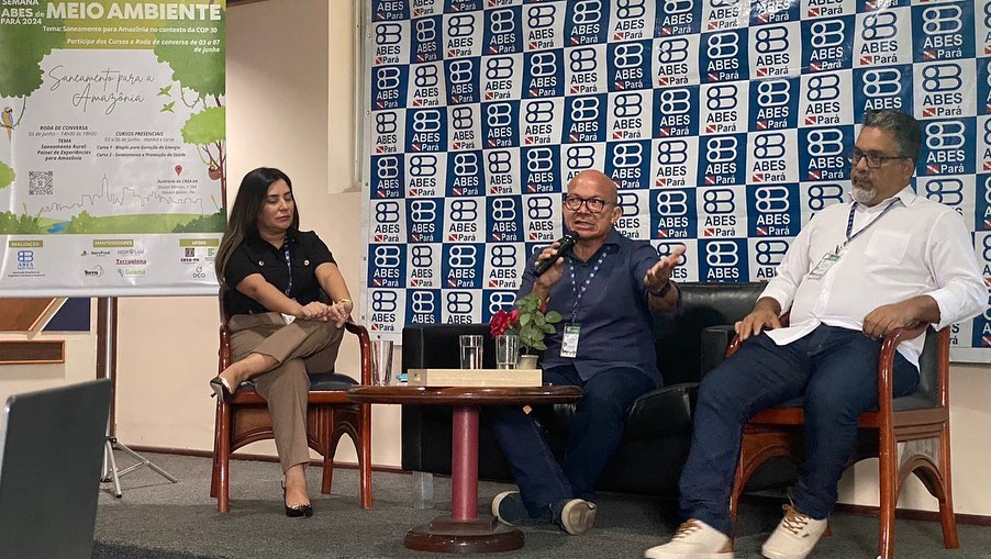 A programação contou com a Roda de Conversa com o tema “Saneamento Rural: Painel de experiências para Amazônia”, com palestras de Rose Caldas, professora da Universidade Federal do Pará (UFPA); Me. Davi Cavalcante, presidente ABES-PA; Valdinei Mendes, professor do IFPA e vice-presidente ABES-PA.