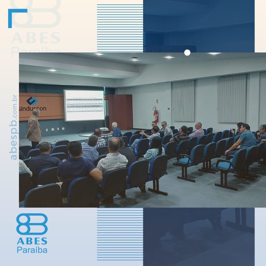 A Associação Brasileira de Engenharia Sanitária e Ambiental Seção Paraíba (ABES-PB) realizou nesta terça-feira, 25 de julho, uma palestra sobre o Plano de Recursos Hídricos do Estado da Paraíba. O evento aconteceu no auditório do Sindicato da Indústria da Construção de João Pessoa (Sinduscon-JP).