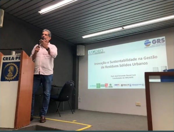 O professor Fernando Jucá, presidente da Fundação de Amparo à Ciência e Tecnologia de Pernambuco (Facepe), foi o palestrante do painel “Inovação na Gestão dos Resíduos”. O segundo painel contou com a participação de Marcelo Benvenuto, da Associação Brasileira de Resíduos Sólidos e Limpeza Pública (ABLP), que falou sobre “Projeto, Drenagem, Controle, Monitoramento e Tratamento do Chorume de Aterros Sanitários”.