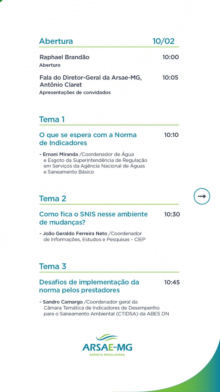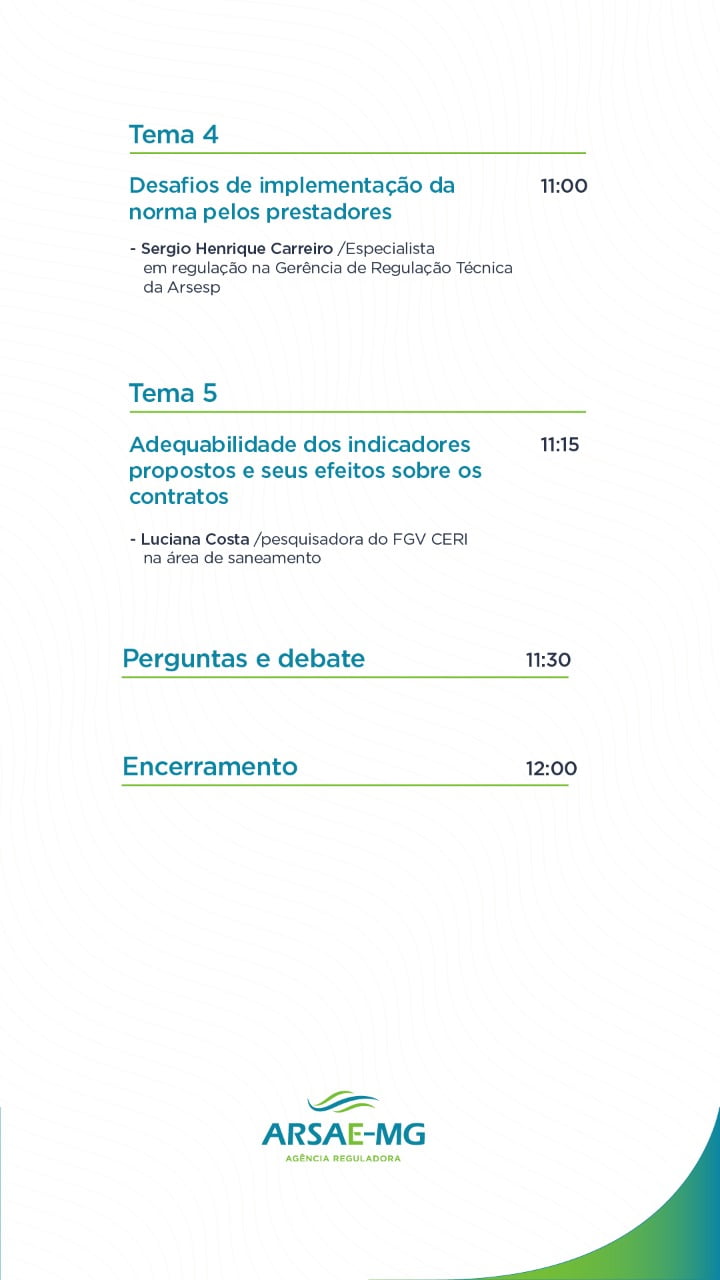 Os convidados abordarão o andamento a Consulta Pública ANA nº 01/2022 e a norma proposta e seus impactos sobre a prestação de serviços e a regulação do setor.