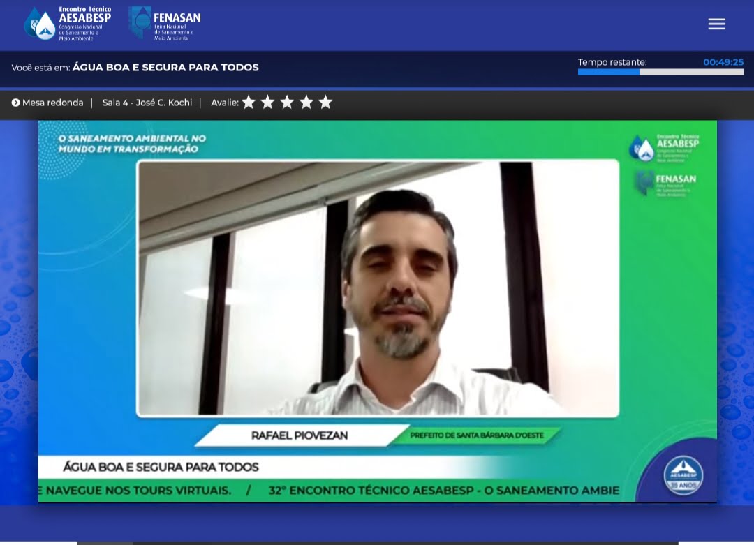 Também integraram o debate Rafael Piovezan, prefeito de Santa Bárbara d’Oeste, e José Vieira, professor catedrático da Universidade de Minho – Portugal. Coordenada por Rosângela Cassia Martins de Carvalho, engenheira da Sabesp, a mesa teve moderação de André Gois, gerente do Departamento de Tratamento de Água Metropolitana da Sabesp.