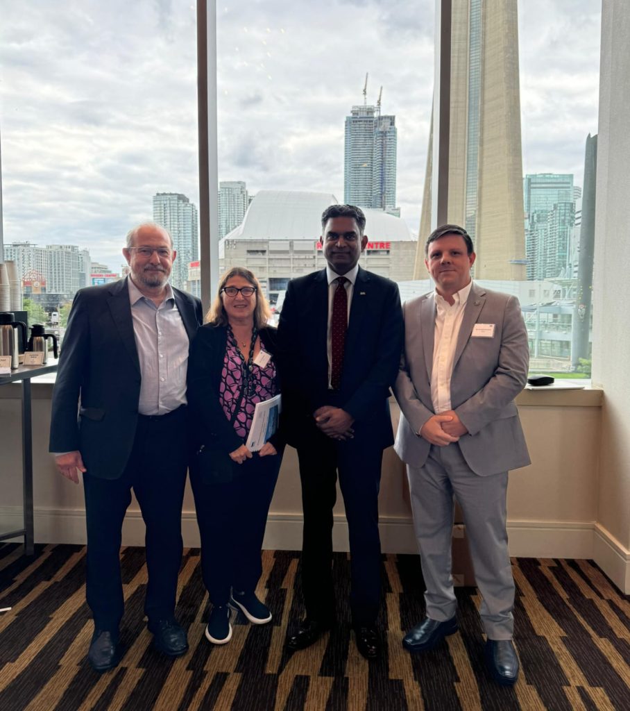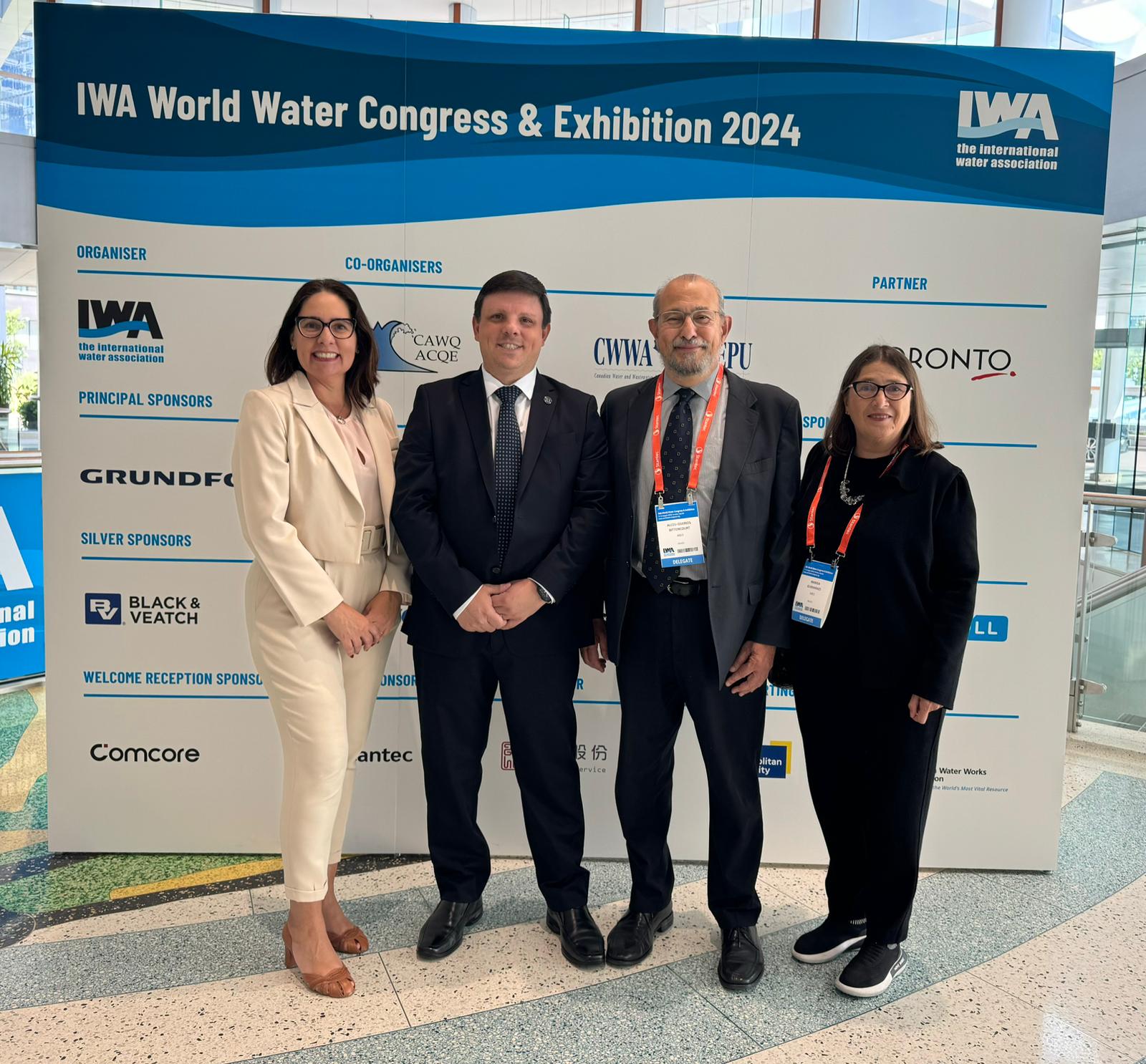 Presidente Marcel Sanches participa como palestrante do evento, que reúne profissionais da água, cientistas e acadêmicos de todo o mundo. O Congresso acontece até esta quinta-feira, 15 de agosto, na cidade de Toronto (na foto, da esq para a dir.: Alceu Guérios Bittencourt, Marcel Sanches, Marisa Guimarães e Daniel Nolasco).