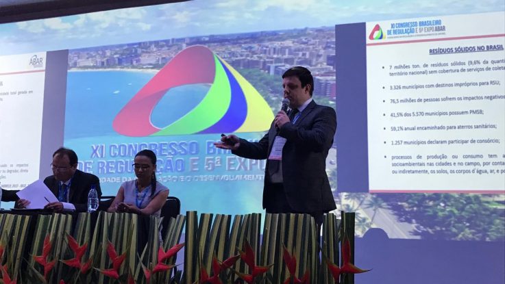 O diretor da ABES Seção São Paulo (ABES-SP), Marcel Sanches, representou o presidente nacional da ABES, Roberval Tavares de Souza, nesta sexta-feira, 16 de agosto, no último dia do XI Congresso de Regulação da ABAR – Associação Brasileira de Agências de Regulação. Realizado no Centro Cultural e de Exposições Ruth Cardoso, em Maceió-AL, o encontro teve como tema central “A qualidade da regulação e o desenvolvimento de um país”. Sanches integrou o painel que abordou os resíduos sólidos no Brasil.
