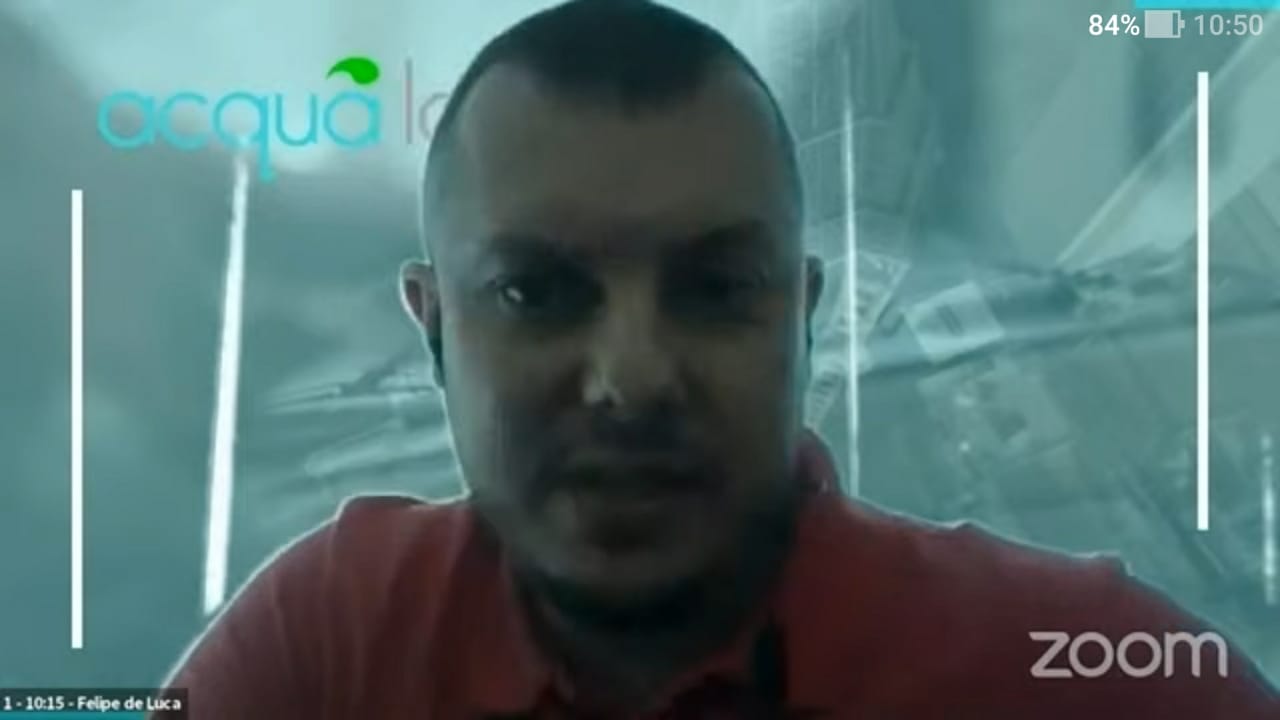 Na primeira parte, apresentaram-se as startups Acqualogic, Bluetech, Galax.ia, Smartacqua e Upflow, exibindo ideias relacionadas ao tema “Eficiência Operacional”.