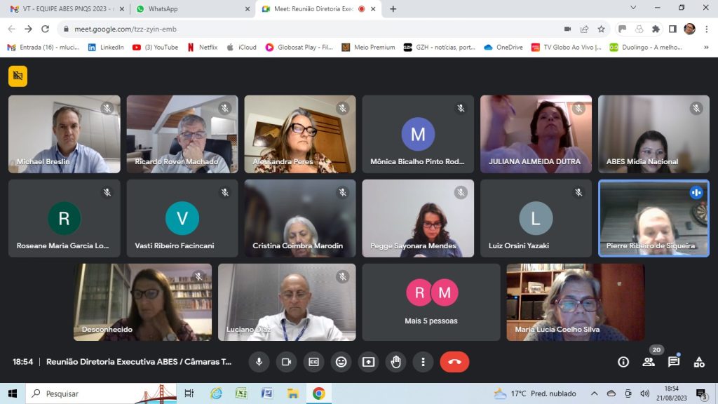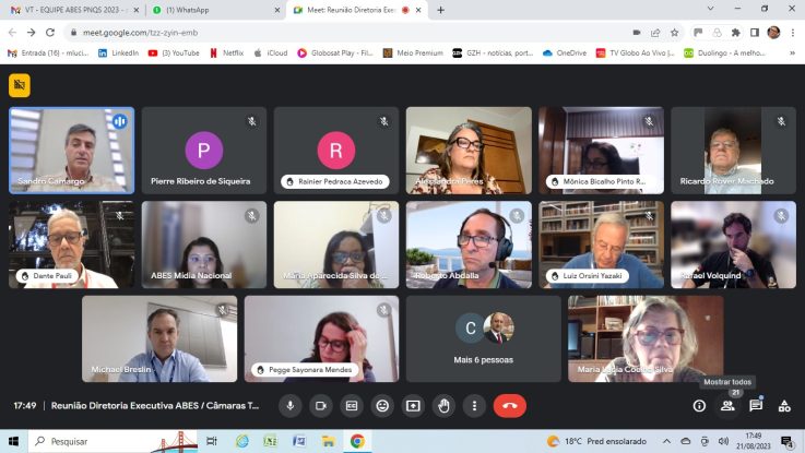 A Diretoria Nacional da ABES realizou nesta segunda-feira, 21 de agosto, uma reunião com coordenadores e membros de suas Câmaras Temáticas buscando ampliar a parceria entre as CTs e a agenda de atividades conjuntas.