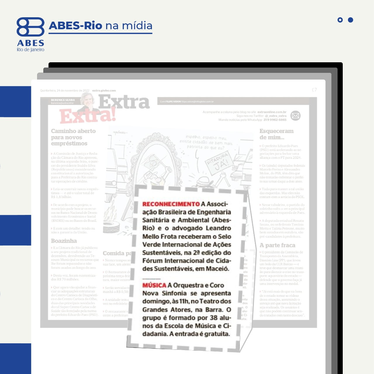 A premiação não passou despercebida na mídia, a coluna de Berenice Seara do Jornal Extra destacou a certificação da ABES-Rio e de Leandro Frota Advogados.