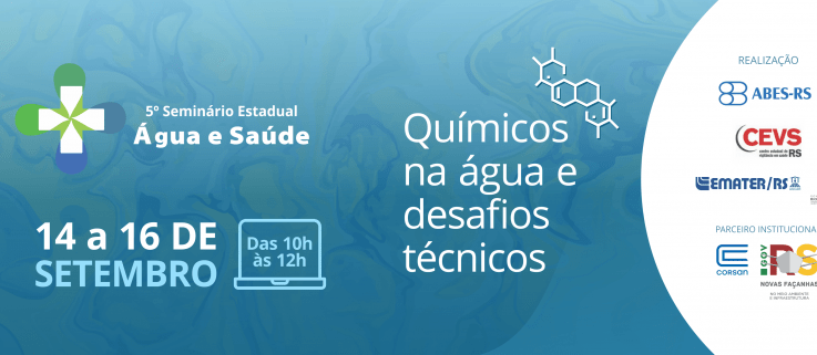 A quinta edição do Seminário Estadual Água e Saúde, promovido pela Associação Brasileira de Engenharia Sanitária e Ambiental – Seção Rio Grande do Sul (ABES-RS), ocorrerá online (em forma de webinares), nos dias 14, 15 e 16 de setembro, das 10h às 12h. As inscrições serão abertas em breve.