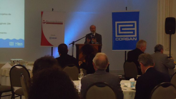 Na ocasião, Flávio Presser apresentou os dados de cobertura de serviços de água e esgoto no Rio Grande do Sul e os investimentos necessários para atingir as metas do Plano Nacional de Saneamento Básico – PLANSAB. Partindo da avaliação da dificuldade no atingimento destas metas, Presser sugere avanços progressivos na coleta e tratamento de esgotos domésticos e investimentos em melhorias na qualidade dos sistemas de abastecimento de água, especialmente em redução de perdas e aumento da eficiência energética.