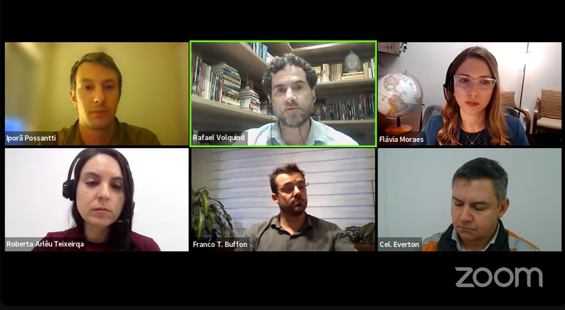 Participaram como palestrantes: Flávia D. S. Moraes, doutora em Geografia/Climatologia pela Georgia State University – Atlanta, que fez uma abordagem sobre eventos extremos, focando no Vale do Taquari; Cel. Marcus Vinicius Gonçalves Oliveira, subchefe de Proteção e Defesa Civil do Estado do Rio Grande do Sul; que ao final foi representado pelo coordenador estadual de Defesa Civil do Rio Grande do Sul, Coronel Everton de Souza Dias; e falaram sobre a experiência atuando na região; Franco Turco Buffon, pesquisador em Geociências; destacando o monitoramento e sistemas de alerta hidrológico, apresentando a concepção e funcionamento, perspectivas e avanços; e Iporã Possantti, doutorando em Recursos Hídricos e Saneamento Ambiental, que ponderou sobre duas mensagens importantes para o futuro: “A mudança climática é o perigo, mas temos que olhar para a nossa exposição ao perigo”; e “É preciso se adaptar para o próximo desastre”.