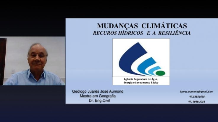 Com o tema “Mudanças climáticas e seus reflexos sobre a disponibilidade hídrica”, o webinar foi ministrado pelo Prof. Dr. Juarês José Aumond, geólogo, Mestre em Geografia e Doutor em Engenharia Civil, referência e reconhecido por diversos trabalhos no Brasil e no exterior, que apresentou pesquisas e experiências pessoais (clique aqui e assista).