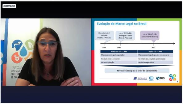 A engenheira Marisa Guimarães, membro do Conselho Diretor da ABES-SP, ministrou nesta quinta-feira, 31, o webinar (seminário online) sobre o curso EAD ABES/BID “Regulação dos Serviços de Saneamento”.