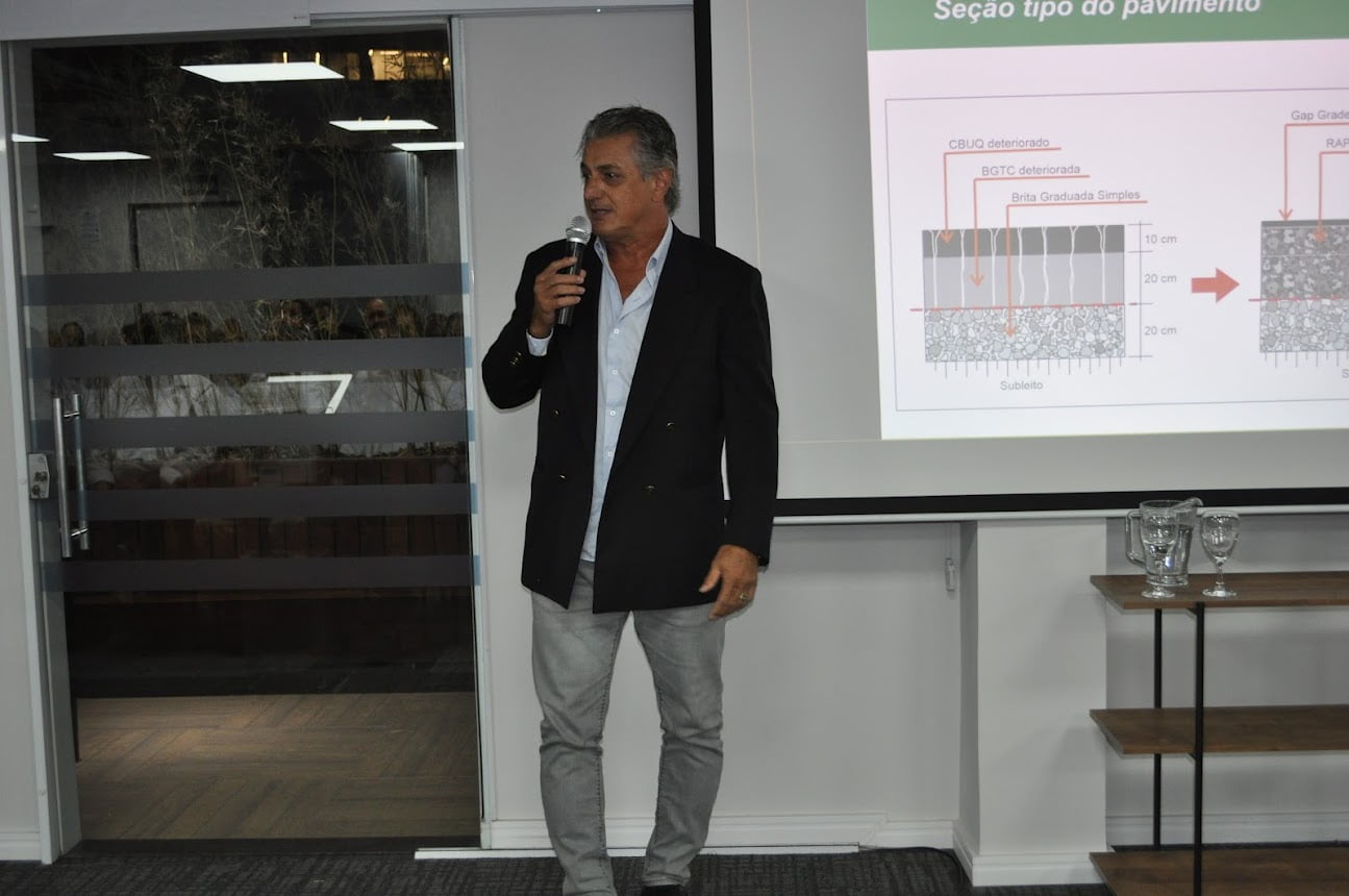 “Gostaria de agradecer o Bar da ABES-SP pelo convite, em estarmos apresentando um pouco do nosso trabalho. Falamos sobre reciclagem, agregados reciclados, recomposição de valas, recuperação estrutural de pavimentos. Estamos à disposição, parabéns pelo espaço, pela sede reformada. Foi muito boa a experiência”, afirmou o engenheiro Valmir.