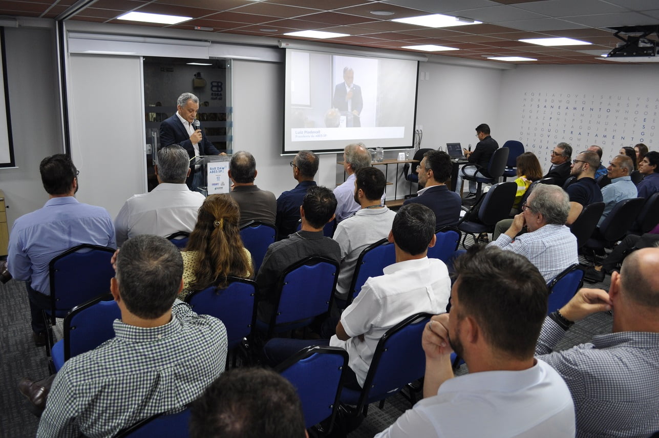 Aurélio Fiorindo Filho, superintendente da Sabesp e conselheiro da ABES-SP, também falou aos presentes. “É uma satisfação ver a casa cheia depois de tanto tempo. A gente está passando por uma fase bastante complicada na Sabesp, onde tudo o que a gente aprendeu sobre saneamento, estamos aplicando bem, em água e esgoto, sabemos operar sistema, mas quando chega na hora de fazer a parte final, alguma coisa não está ficando boa, segundo os contratantes, que são as prefeituras”, disse.