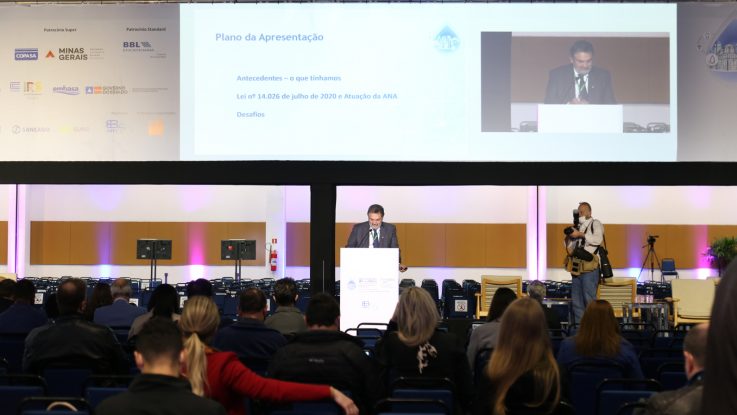Com uma apresentação detalhada, Oscar de Moraes Cordeiro Netto, diretor da Agência Nacional de Águas e Saneamento Básico, destacou os principais pontos que estão sendo trabalhados pela ANA para consolidar seu papel de entidade coordenadora do novo marco legal do saneamento básico. Agência também lançou o ATLAS ÁGUA durante o Congresso.