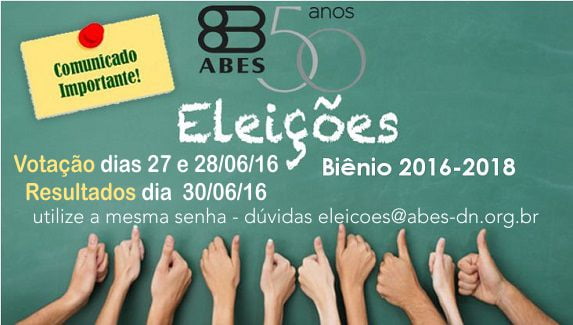 Em caso de dúvidas entrar em contato com o email: eleicoes@abes-dn.org.br.