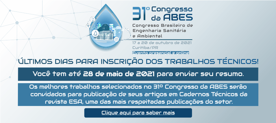 Copyright © 2016 | Todos os direitos reservados. ABES - Associação Brasileira de Engenharia Sanitária e Ambiental | Avenida Beira-Mar, 216, 13º andar, Rio de Janeiro – Tel.: (21) 2277-3900