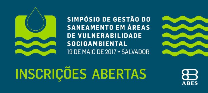 A ABES, por meio da Câmara Temática de Prestação de Serviços e Relacionamento com Clientes, coordenada por Samanta Oliveira e Juliana Dutra, promoverá, em 19 de maio, o primeiro Simpósio de Gestão de Saneamento Ambiental em Áreas de Vulnerabilidade Socioambiental. O evento ocorrerá em Salvador e está com inscrições abertas aqui.