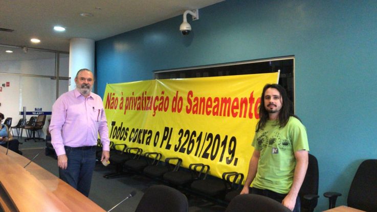 Francisca Adalgisa fez críticas ao projeto do deputado Geninho e lembrou que, enquanto prefeito de Olímpia (no interior de São Paulo), “ele defendeu o setor de saneamento público, mas como deputado, elaborou uma lei que não o privilegia, que leva à extinção as empresas estaduais, favorece o aumento da tarifa e cria novas taxas (lixo, drenagem e varrição)”. A Presidente da APU afirmou que o PL fere a Constituição Federal em diversos aspectos, como o princípio da lei de contrato e licitações. “Como temos deputados que aprovam um projeto com tantas irregularidades e privilégios para o setor privado em detrimento do público e da sociedade?”, questionou. “O projeto não prevê a universalização nem recursos ou financiamentos, centraliza o poder no governo federal através da ANA, tira a autonomia dos municípios, sob a retórica de que é para fazer saneamento, para universalizar”, acentuou, com indignação.